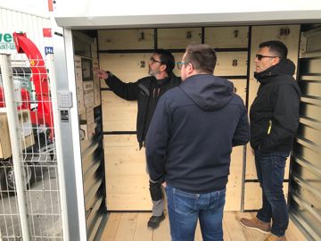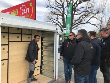 Plusieurs casiers sécurisés équipent le conteneur, permettant de récupérer des matériels de différentes tailles : tondeuses, débroussailleuses, taille-haies, souffleurs, tronçonneuses, y compris celles dotées d'un grand guide-chaîne, etc. « Les casiers conviennent à de gros et petits volumes. Les plus petits seront utilisés pour des pièces, des accessoires et des consommables », explique Jean Jadaud, dirigeant de R-Motions. Avec ce système de drive, le professionnel évite les attentes au comptoir. Il peut venir en fin de journée après ses chantiers, en dehors des heures d'ouverture, et accéder aux produits qu'il a demandés. Il est averti de la disponibilité par un code à six chiffres envoyé par SMS. Il peut aussi déposer du matériel à entretenir ou à réparer. Pour cela, il lui suffit de contacter le magasin qui lui donnera un code. Il sélectionnera ensuite le casier qui convient à la taille de son matériel à déposer. Toutes les tâches disposent d'une traçabilité grâce à un logiciel intégré et évolutif. La sécurité est aussi au rendez-vous puisque les ouvertures et fermetures des casiers sont sécurisées. Le conteneur se referme également automatiquement après validation de la réception d'une marchandise ou d'un dépôt. Toutes les opérations s'effectuent depuis une commande tactile dotée d'un parcours client guidé.