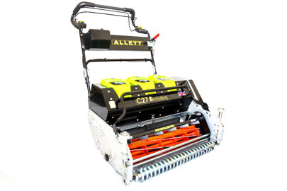 L’originalité des tondeuses Allett tient aux cassettes qui s’adaptent au châssis moteur : scarificateur, groomer, brosse, verticutter, défeutrer… De quoi les rendre polyvalentes.