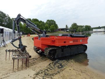 - le bateau amphibie Conver C585, motorisé par un bloc Hatz de 85 ch, permettant les interventions dans l'eau à une profondeur de travail jusqu'à 1,5 m (hors outil) et sur les berges ;