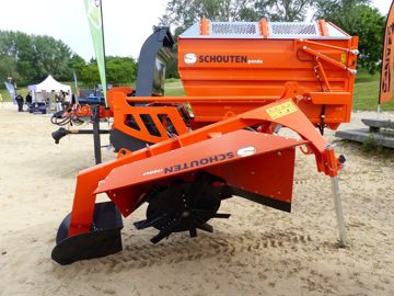 L'entreprise a également profité du salon pour présenter le catalogue du constructeur Schouten, spécialisé dans l'agriculture et l'environnement, également installé aux Pays-Bas. Ce dernier propose des machines de tonte et de fauchage avec ramassage tirées par des tracteurs. De grand gabarit, elles permettent d'augmenter la productivité sur les gros chantiers nécessitant l'exportation de volumes importants d'herbe. Elles peuvent également scarifier et ramasser les déchets.
