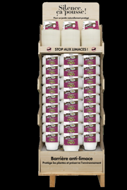 Le second présentoir est réservé au best-seller de la marque, l’anneau Stop limaces, qui, positionné autour des plants et des semis, agit comme un obstacle insurmontable.