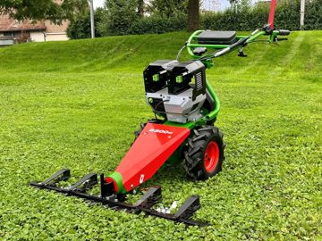 Agria a également présenté sa faucheuse à barre de coupe 5300e (unités de coupe de 105 ou 122 cm). La machine à transmission par vis sans fin et embrayage par courroie reçoit elle aussi un ensemble électrique Ego Power avec un moteur de 3,46 kW et deux batteries interchangeables. L'entraînement de la barre de coupe et celui de l'avancement demeurent indépendants.