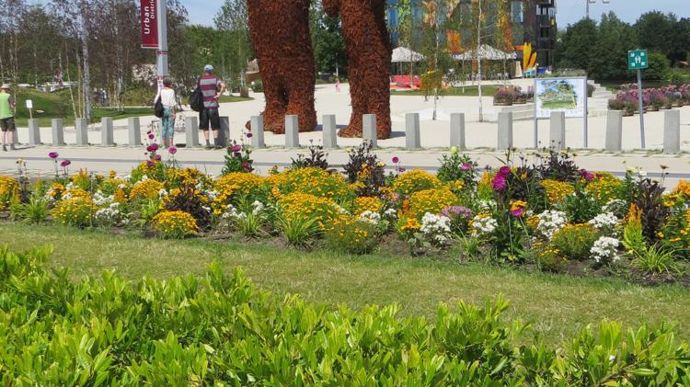 La sculpture vigie d’un père et de son fils (photo 9) n’a pas été choisie par hasard pour symboliser le fil vert de la thématique décennale de Floriade : l’idée est que l’homme fait partie intégrante du renouvellement urbain. Il contribuera aux changements de pratiques dans une ville créée pour ses usages et son confort. L’écologie (du grec oikos, signifiant la maison) le mettra toujours au cœur des projets comme usager et si possible comme acteur. Hortus, un futur quartier d’Almere, est d’ailleurs le fer de lance de la thématique de cette édition de Floriade.