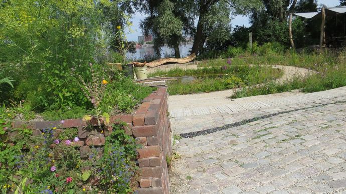 Par ailleurs, l’identité des jardins privés néerlandais est lisible durant la visite. La culture protestante impose naturellement la visibilité entre voisins et freine les séparations végétales hautes, tout comme l’absence de volets aux fenêtres les transforme en vitrines vertes. Les jardinets de devanture proposent un schéma inspiré des jardins médiévaux : carré enserré d’une bordure basse de buis, soit habillé d’une masse végétale dans laquelle se distingue souvent un plus ou moins grand sujet de pépinière, soit conçu comme un jardin minéral minimaliste.