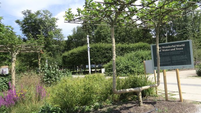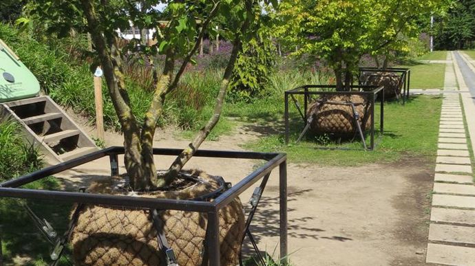 Les professionnels repèrent des solutions pour créer des corridors écologiques, des continuums de biodiversité, pour éviter le damage du sol au pied des arbres. L’usage du lierre rampant est très courant dans le pays, le paillage était d’ailleurs très rare à Floriade. Pour répondre aux préoccupations omniprésentes autour de la ressource en eau, l’entreprise Wavin, à Zwolle, aux Pays-Bas, et son implantation française à Varennes-sur-Allier (03) ont conçu le TreeTank. Ce bac enterré en PVC optimise l’alimentation hydrique et la croissance de l’arbre en ville.