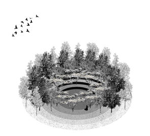 « La Forêt sacrée », jardin imaginé par Noopur Sejpal, architecte paysagiste, Zubin Parekh et Khushi Jalan, architectes, tous trois indiens, est inspirée des forêts sacrées de leur pays. « Ces parcelles de forêt vierge couvrent de quelques arbres à plusieurs hectares et concentrent une riche biodiversité de plantes, fruits, branches fleuries et cours d’eau », expliquent-ils. Elles « représentent également un moyen de subsistance pour les populations locales. Attentives aux capacités de renouvellement de la terre, celles-ci ne prélèvent que le surplus qu’elle peut donner, ce qui constitue véritablement une pratique résiliente ». C’est peut-être tout simplement cela la résilience !