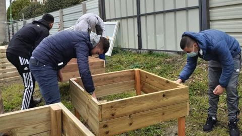 Des bacs potagers sont en cours d’installation pour y installer plantes ornementales et aromatiques.