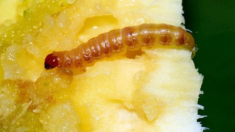 Chenille d'une nouvelle espèce de lépidoptères, la foreuse du yucca a été identifiée dans le Var en août 2016. PHOTO : ÉRIC CHAPIN, COSAVE