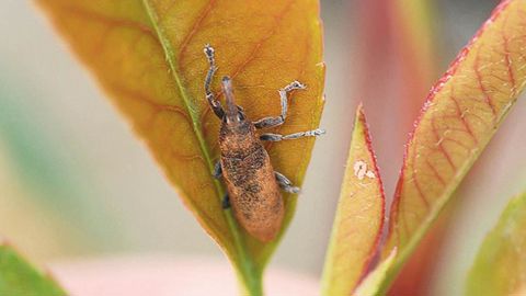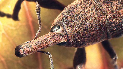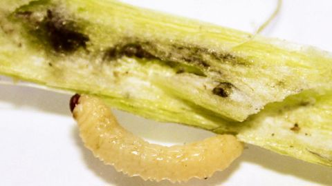 La larve du lixeLa larve au corps incurvé blanc rosâtre creuse une galerie dans la moelle des tiges de la plante hôte. PHOTO : CHAMBRE D'AGRICULTURE DE VENDÉE