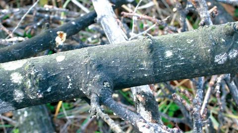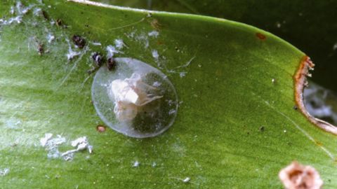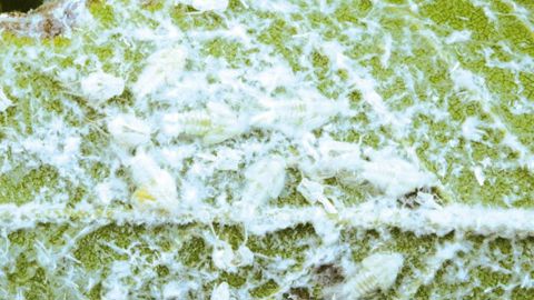 La présence de la pellicule luisante et collante sur les feuilles basses des arbustes évoque d'importants écoulements de miellat. Ce liquide étant excrété par des insectes piqueurs suceurs phloephages (1), les recherches s'orientent vers un organisme appartenant à l'ordre des hémiptères. Le feutrage noir couvrant les feuilles et les écorces des branches correspond à la fumagine, un complexe de champignons saprophytes qui s'installe sur le miellat. L'observation au début de l'été des premiers adultes permet d'identifier l'espèce en cause. Il s'agit de la cicadelle blanche encore appelée cicadelle pruineuse ou flatide pruineux : Metcalfa pruinosa (Say). Cet insecte appartient à la famille des Flatidae.