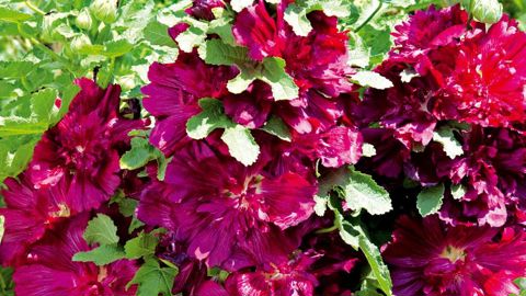 Cette dernière née dans les roses trémières est la plus compacte du marché, une naine robuste et bien ramifiée, avec de solides tiges de 60 cm et un port colonnaire de 25 cm d'envergure. De nombreuses et belles grandes fleurs semi-doubles (8-10 cm) pourpre éclatant perdurent de fin mai jusqu'aux gelées. Elle convient en vasque, pour les patios ou les balcons, et dans tous les jardins sans besoin de tuteur ni de lien.