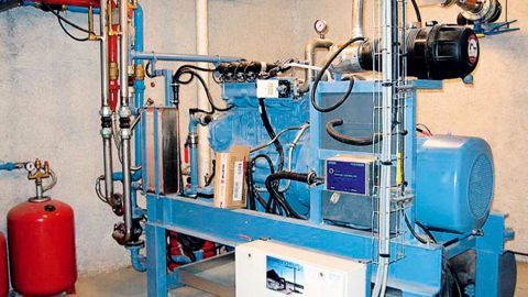 Biogaz (composé à 55 % de méthane CH4 et à 35 % de gaz carbonique CO2) et digestat sont stockés dans un post-digesteur de 1 250 m3. Le biogaz alimente un cogénérateur de 45 kWél qui fonctionne 8 200 heures/an. L'électricité (360 MWh/an) est vendue à EDF (19 c€/kWh depuis 2011). La puissance thermique produite par le cogénérateur est de 47 kWth, ce qui permet de fournir 370 MWh thermiques par an : 25 % servent à chauffer le digesteur, 25 % sont perdus et 50 % sont utilisés pour chauffer l'eau de la fromagerie, les serres horticoles (500 m2 à 16 °C), l'accueil... L'exploitation a calculé une économie de 80 t de CO2 par an.