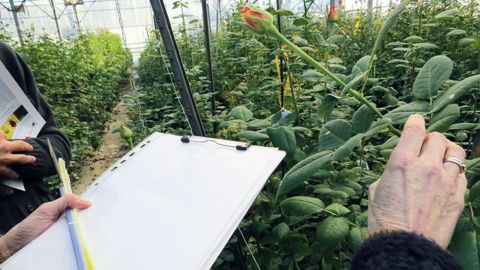 « Nos métiers changent, l'observation devient obligatoire », analyse Benjamin Fourmillier, producteur de roses à La Crau (83), qui a testé l'OAD pendant un an (voir l'encadré de la page 12). « Une heure de surveillance hebdomadaire, ça devient acceptable, ça peut permettre d'éviter un traitement (soit une intervention d'une heure et demi en moyenne). Nous sommes sur la bonne voie, mais ce n'est pas fini. » Pour Pascal Portella, rosiériste à La Garde (83), pour tenir compte de l'hétérogénéité de l'exploitation (variétés différentes, effets de bordure...), « il faudrait faire des observations sur sa totalité et là, c'est un autre travail ! » Au final, l'observation des zones d'échantillonnage prend encore trop de temps pour les producteurs. Et ce, malgré l'utilisation du protocole « QuickSampling » créé par l'Inra pour simplifier le suivi épidémiologique. Cette méthode de classes visuelles d'abondance est moins précise que l'observation par comptage, mais donne des tendances. Ainsi, pour la rose, sur une zone de 500 m2, un échantillon pour 5 m2 de culture est observé. Pour chaque point, différentes strates de la plante sont notées (« poumon » et tige récoltée). Pour chacune d'elles, l'observateur attribue une note indiquant l'intensité de présence de l'agent nuisible ou utile (1 absence, 2 présence, 3...). Le stade de développement du ravageur est également précisé.