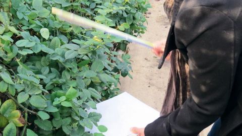 Après le battage du poumon des rosiers, les individus récoltés sur fond blanc feront l'objet d'observations. PHOTO : VALÉRIE VIDRIL
