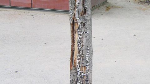 Développement du champignon schizophylle sur des échaudures corticales (ou nécroses orientées) sur un jeune marronnier.