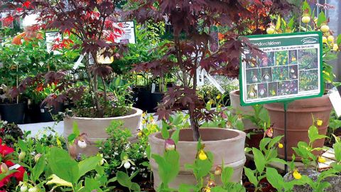 Par ailleurs, un gros sujet en touffe mis en valeur sur une tablette de vente montrera aux consommateurs et aux jardiniers le potentiel de développement de ce type d'hybride. Les érables japonais font également une association opportune sur la tablette de vente en apportant de l'ombre aux orchidées. Ensuite, au jardin, leurs racines n'entreront pas trop en compétition pour l'eau et les nutriments.