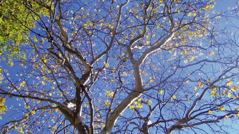 Dépérissement rapide du houppier d'un platane affecté par le chancre coloré.