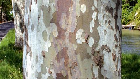 Le platane à feuilles d'érable développe des feuilles aux lobes marqués et présente un tronc régulier et lisse ; P. pyramidalis se remarque par ses limbes foliaires aux lobes plus atténués, une écorce écailleuse dont les rhytidomes restent adhérents et de nombreux renflements marqués dans la partie basse du tronc.