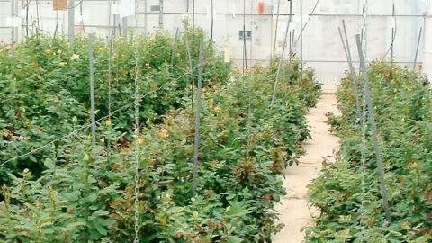 Serre de rosier en hors-sol et déshumidificateur (au fond de la serre). PHOTO : SCRADH