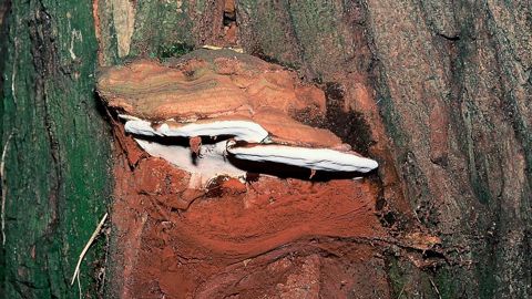 Dégradation du bois : la pourriture blanche fibreuse est de type « sélective ». Les constituants de lignine sont préférentiellement décomposés ; le bois perd progressivement sa rigidité tout en conservant une certaine élasticité.