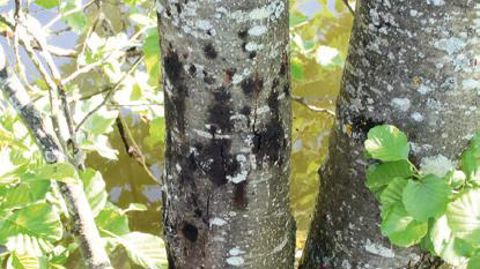 Écoulements noirâtres sur le tronc causé par Phytophthora alni.