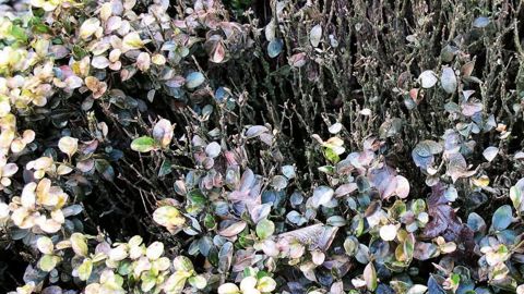 Pour les petites haies d'enceinte qui doivent garder en permanence une hauteur de 20 à 30 cm, le choix est plus délicat et doit se porter sur des végétaux rustiques, à petit développement et/ou croissance lente, à feuillage dense et persistant, et tolérant la taille. Parmi les candidats, citons Lonicera nitida (chèvrefeuille à feuille de buis) 'Maigrün' et Berberis buxifolia 'Nana' (attention aux épines). C'est aussi le cas d'Osmanthus x burkwoodii, « mais ses feuilles sont plus larges que celles du buis et son port moins compact », selon Jérôme Jullien, qui l'estime difficilement utilisable pour la confection de petites bordures. « Il conviendrait mieux à la réalisation de certaines topiaires (à partir d'un diamètre d'environ 40 cm) ou buissons de hauteur moyenne. » L'osmanthe donne en avril une profusion de petites fleurs blanches parfumées.