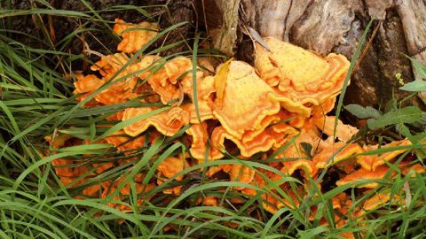 Chapeaux volumineux et imbriqués du polypore soufré (Laetiporus sulfureus). PHOTOS : PIERRE AVERSENQ