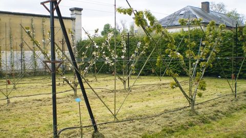 2 PLANTER DES FRUITIERS, LES CONDITIONS DE LA RÉUSSITE. « Comme pour toute plantation d'arbre, outre le respect des règles de l'art, il faut savoir mettre la bonne espèce au bon endroit », rappelle Éric Dumont-Baltet, pépiniériste dans l'Aube, petit-fils de Charles Baltet co-créateur de l'École nationale supérieure d'horticulture de Versailles (78) aux côtés de Jean-Baptiste deLa Quintinie. Ce choix s'appuie sur la connaissance du contexte environnemental et sur le niveau de compétence et la disponibilité des futurs gestionnaires. Ils conditionnent en particulier le choix de la forme retenue, fruitier palissé, dirigé ou de plein vent. Car si ces trois formes exigent une phase de formation et des opérations de taille tout au long du développement, les formes palissées mobilisent beaucoup plus de temps et de compétences. « Hormis la question du suivi, l'une des clefs pour réussir les espaliers (contre un mur) ou les contre-espaliers (sans mur), est de s'assurer que les supports, poteaux et fils, seront aptes à supporter des poids importants lorsque les sujets seront en pleine production », précise Éric Dumont-Baltet. Concernant le lieu d'implantation, le producteur recommande d'éviter la proximité d'un boisement, du fait de la possible concurrence pour l'alimentation et la lumière et de la présence de gibiers ; les fonds de vallée dans lesquelles les gelées sont plus fréquentes ; les terres trop humides ou asphyxiantes ; les altitudes au-delà de 1 000 m. Enfin, une attention particulière doit être portée à la nature du porte-greffe, en particulier dans les régions où les sols sont calcaires, car les porte-greffes couramment utilisés ne sont pas forcément adaptés. À titre d'exemple, la plupart des poiriers sont greffés sur cognassiers d'Angers, non adaptés aux sols calcaires. Dans cette situation, il faut disposer de fruitiers greffés sur cognassier de Provence. Le pépiniériste incite à un dialogue entre le producteur et l'acheteur permettant à ce dernier, si besoin, d'obtenir des arbres spécifiquement greffés pour ses besoins.