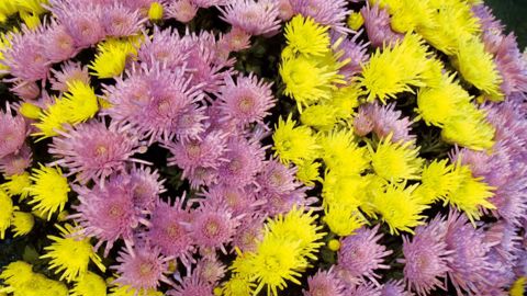 Benoît et Thomas Bernard, obtenteurs et producteurs de plants de chrysanthèmes, proposent des mélanges depuis six à huit ans au sein de leur série Yahou® (six couleurs), et depuis deux ans dans la série Corto® (six couleurs également). Les options possibles sont testées sur une à deux années pour s'assurer que les idées tiennent leurs promesses. « En prenant et en interchangeant des coloris dans la même série, nous avons le maximum de chances qu'ils aillent bien ensemble, avec une végétation homogène. Pour anticiper la demande, nous réalisons de plus en plus d'essais, en associant un Korus® violet avec un Yahou® coco. L'objectif est d'arriver à proposer davantage de combinaisons. Ces mélanges permettent de compenser une diminution des ventes en grosses fleurs. Cette saison et cette Toussaint encore, les mélanges ont plu et nos clients en ont manqué.