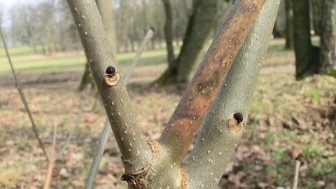 Dans la région traversée, de très nombreux frênes expriment les mêmes symptômes maladifs quelles que soient les conditions stationnelles dans lesquelles ils se trouvent. Le fait qu'une seule essence soit affectée de façon assez généralisée oriente le praticien vers la piste d'un facteur d'agression de type biotique. Les nécroses corticales relevées sur les rameaux, ainsi que les chancres fusoïdes à la base des axes desséchés laissent envisager ici la présence d'un mycète, parasite des tissus secondaires. L'abondance des rejets en dessous des zones chancrées et nécrosées signe une réaction de l'arbre qui vise à reconstituer ses parties endommagées. Des prélèvements d'échantillons sur les axes nécrosés et leur analyse par un test de détection PCR (Polymerase Chain Reaction) permettent de confirmer la présence du pathogène Chalara fraxinea (forme sexuée : Hymenoscyphus pseudoalbidus) responsable de la chalarose du frêne. Les techniques d'analyses classiques en laboratoire par isolement sur milieux de culture se montrent peu performantes (croissance lente, cultures aisément contaminées...).