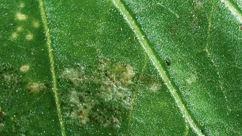 Piqûres de thrips sur feuille. PHOTO : JÉRÔME JULLIEN