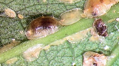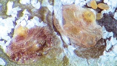 Le site internet de l'Inra, HYPPZ, présente une description de différentes cochenilles femelles (www7.inra.fr/ hyppz/ZGLOSS/3g---088.htm). Chez certains genres (Pseudococcus sp.), les oeufs sont recouverts de flocons de cire. Chez d'autres (Orthezia sp., Icerya sp.), les oeufs sont protégés par des parois cireuses formant l'ovisac. Le pou des Hespérides (Coccus hesperidum, Lecaniidae) ou la cochenille noire de l'olivier (Saissetia oleae) ont une carapace constituée de couches de laque. Tandis que chez Lepidosaphes sp. (Diaspididae), le boubouclier est formé des exuvies larvaires. Sauf exception, les mâles ressemblent à de minuscules insectes (plus ou moins 1 mm). Ils vivent de quelques heures à quelques jours et n'ont pas de pièces buccales. On les observe rarement. Ils peuvent être aptères ou ailés - certains n'ont qu'une paire d'ailes membraneuses la deuxième ayant évolué en « balanciers ». Le premier stade larvaire est baladeur. Les jeunes larves ou « crawlers » pourvues de six pattes sont toujours mobiles. Elles vont se disperser sur la plante à la recherche d'une zone propice. Au bout de quelques jours, elles s'y fixent et s'y nourrissent. Les crawlers peuvent être observés avec une loupe d'un grossissement minimum multiplié par cinq, de préférence le matin quand la température basse ralentit leur mobilité. Étant très petites et légères, ces jeunes larves sont facilement emportées par le vent ou par tout autre vecteur vers d'autres végétaux. Ce stade est le mode de dissémination du foyer de cochenilles sur la plante elle-même, mais aussi dans l'exploitation (le transport de plantes infestées est une des causes principales de dispersion des cochenilles à grande distance). Les crawlers ne sont pas encore protégés par des protections de chitine ou cire. C'est le stade propice aux interventions chimiques ou d'auxiliaires.