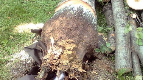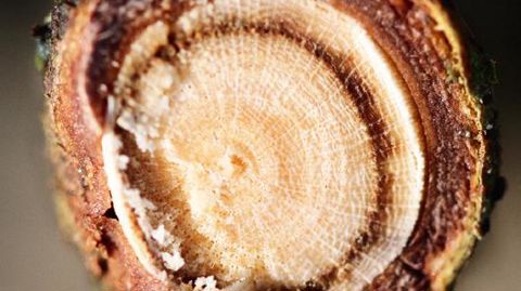 Anneau brun dans les vaisseaux conducteurs de l'arbre, dû à une attaque de graphiose.