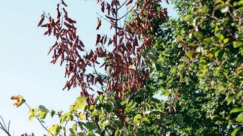 Sujets au chignonage, les jeunes ormes hybrides peuvent subir des strangulations aboutissant alors à leur dépérissement prématuré ou à leur rupture. PHOTOS : PIERRE AVERSENQ