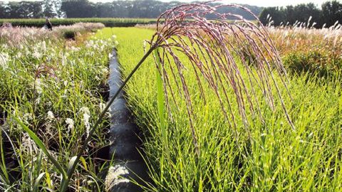 Les grandes panicules plumeuses du miscanthus aux reflets argentés ou violacés ne pouvaient qu'attirer l'intérêt du jardinier. Cependant, l'espèce considérée, Miscanthus x giganteus, n'a pas été créée à des fins ornementales, mais énergétiques. Elle résulte de l'hybridation entre Miscanthus sinensis et M. sacchariflorus. Elle est stérile du fait de sa triploïdie, et le faible développement latéral de ses rhizomes laisse supposer un potentiel invasif limité, au contraire des espèces utilisées en ornement, en particulier M. sinensis ou roseau de Chine. La culture pérenne (supérieure à quinze ans) de cette graminée vivace au métabolisme photosynthétique en C4 atteint des rendements de 10 à 25 t/ha à partir de la deuxième ou troisième année d'installation. Ses exigences limitées (en produits phytosanitaires, en fertilisants...) la rendent particulièrement attractive pour une production de biomasse respectueuse de l'environnement. Le lycée horticole Terre d'horizon - pôle d'enseignement public du végétal, du paysage et de l'environnement de la Drôme -, avec différents partenaires, mène depuis 2008 une expérimentation pour évaluer la faisabilité de la culture du miscanthus dans les conditions locales et sa valorisation possible.