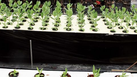 Le mode de production du lisianthus, culture majeure du bassin hyérois, doit être renouvelé. Ici, des micromottes et des jeunes plants (à l'arrière-plan) en culture aéroponique pour s'affranchir des problèmes de fatigue du sol.