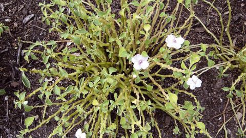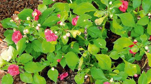 Des feuilles qui jaunissent, dont les bords s'enroulent, recouvertes d'un duvet blanc grisâtre sur leur face inférieure pour finalement chuter et ne laisser qu'un bouquet de tiges dégarnies, des plantes rabougries avec de rares boutons floraux : le mildiou de l'impatiens peut être vu comme une malédiction pour quiconque se risque encore à planter Impatiens walleriana. Les plantes infectées périssent en seulement quelques jours. Ce peut aussi être une opportunité de renouveler la gamme, de faire découvrir d'autres plantes ou, pour les obtenteurs, de travailler et de proposer de nouveaux cultivars résistants.