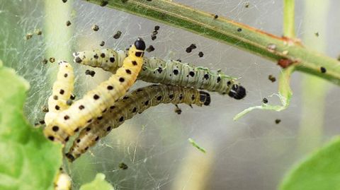Chenilles d'hyponomeute sur fusain d'Europe.