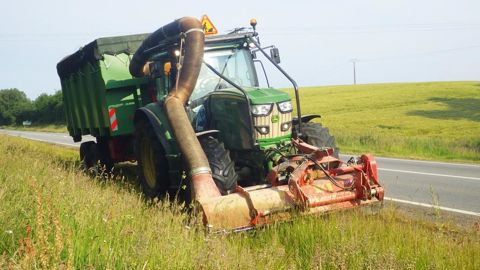 Des équipements de fauchage avec exportation permettent aujourd'hui de ramasser l'herbe des bords de route et ainsi de valoriser énergétiquement cette biomasse comme substrat de méthanisation. Le matériel, spécifique, comporte un système de fauche broyage classique combiné à un système d'aspiration et un caisson de ramassage. Le Centre d'études et d'expertise sur les risques, l'environnement, la mobilité et l'aménagement Ouest (Cerema Ouest) mène depuis 2015 un suivi expérimental de ce système sur les dépendances vertes de la Direction interdépartementale des routes Ouest (DIR Ouest). Objectif de ce programme d'une durée de quatre ans : vérifier les intérêts et limites du fauchage avec exportation par rapport à la fauche classique (coûts d'entretien, organisation, sécurité, impacts sur l'eutrophisation, la biodiversité, l'évolution des espèces exotiques envahissantes et patrimoniales...).