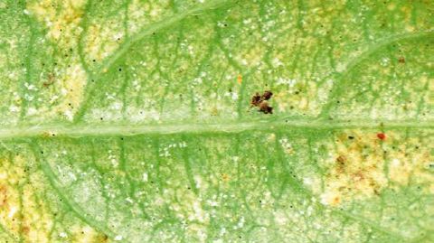 Attaque de tétranyques tisserands, Tetranychus urticae. PHOTO : JÉRÔME JULLIEN