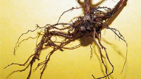 Crown-gall sur fuchsia causée par Agrobacterium tumefaciens. PHOTO : JÉRÔME JULLIEN