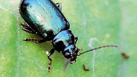 Altise adulte sur fuchsia. PHOTO : JÉRÔME JULLIEN