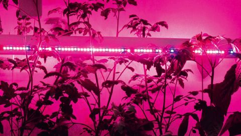 Les diodes rouges et bleues sont les plus utilisées en éclairage horticole car elles correspondent aux rayonnements absorbés par la chlorophylle. En revanche, la lumière verte non utile à la photosynthèse est réfléchie par les feuilles... d'où leur couleur. PHOTO : VALÉRIE VIDRIL