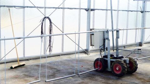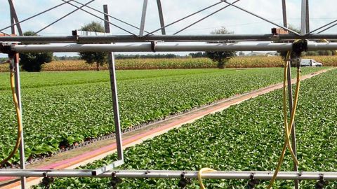 La station a modifié un chariot d'irrigation en installant des tuyaux d'irrigation en PVC sur des balançoires réglables en hauteur. Sur chaque bras du robot ont été positionnées quatre balançoires. La culture a débuté en mai et le premier passage du robot a été réalisé une semaine après, le temps que les boutures s'enracinent un peu. Chaque jour aux alentours de midi, le robot a stimulé les plantes trois fois de suite (un aller-retour et un aller). Ce nombre de passages caractérise « l'intensité de stimulation ». Le nombre de stimulations par semaine, ou « fréquence de stimulation », dépendait de chaque balançoire. Deux balançoires – une sur chaque bras – étaient utilisées une fois par semaine, une deuxième paire deux fois par semaine, la troisième trois fois et la dernière paire était passée sur les plantes quatre fois par semaine. Chaque semaine, la hauteur des balançoires était réajustée afin de la réadapter à la hauteur des plantes pour que le tube de PVC stimule les premiers centimètres des apex des végétaux les plus hauts. C'est à cet endroit que les tiges seraient les plus réceptives aux stimuli. Après deux mois, les différences étaient assez marquées et plus encore après trois mois. Les plantes de la modalité la plus stimulée, plus petites d'environ 25 % par rapport au témoin, n'auraient pas eu besoin d'application de régulation de croissance pour atteindre leur taille commerciale.