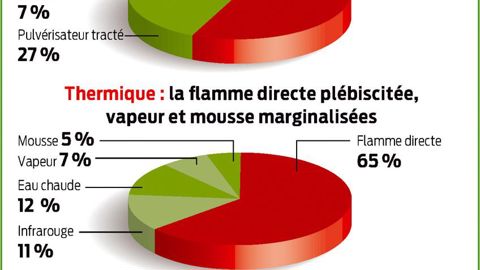 Un deuxième protocole s'intéresse à l'efficacité des méthodes thermiques (brûleur, vapeur, eau chaude) vis-à-vis de la destruction de la flore spontanée, selon les espèces présentes et leur stade phénologique. La dernière expérimentation concerne l'évaluation du nombre d'interventions nécessaires pour un seuil de gestion donné dépendant du niveau d'acceptation de la flore spontanée, (contraignant ou moins contraignant) sur support perméable ou imperméable.