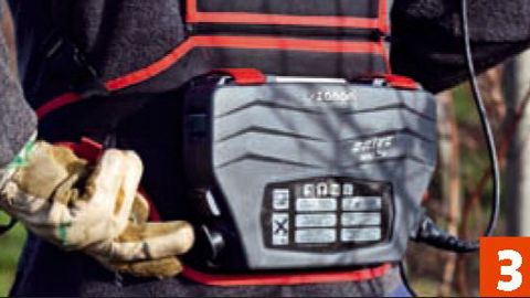 Le harnais. Les avis sur le harnais à larges bretelles noires avec un liseré rouge du Zanon sont partagés. Jérôme et Jean-Claude l'ont enfilé et réglé sans difficulté. En revanche, Jessica a eu du mal à l'ajuster à sa petite taille et Mathias a trouvé qu'il « ne tient pas bien en place et se dérègle facilement ». L'étui du sécateur, en forme de V et profond, pend très bas le long de la cuisse. Quant à la batterie, volumineuse et en position basse dans le dos, elle a donné lieu à des avis contrastés.