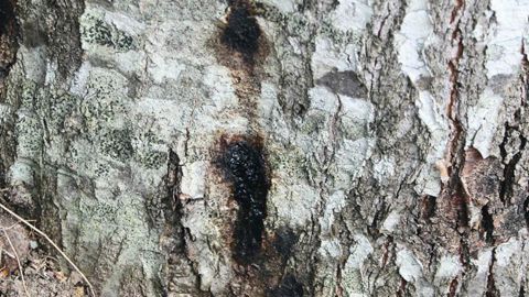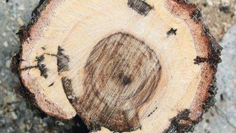 Les coupes réalisées confirment la présence de nombreux points d'infection au niveau des tissus cambiaux. Des cals cicatriciels se sont systématiquement développés au cours de la même année et ont recouvert les différentes lésions. Ces recouvrements successifs laissent en place dans le bois profond, sur les cernes de bois de printemps, ces îlots nécrotiques inactifs à la forme assez caractéristique en « T ». Année après année, les traces de ces infections répétées restent visibles à l'extérieur sur les écorces des arbres et ce, même si la continuité des tissus cambiaux est recouvrée sur toute la circonférence du tronc.