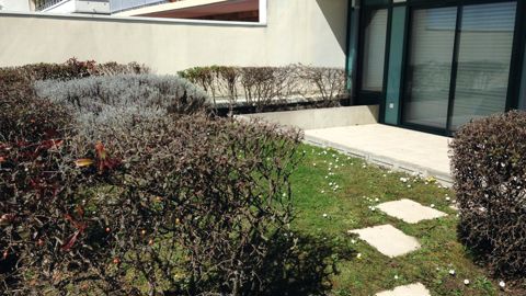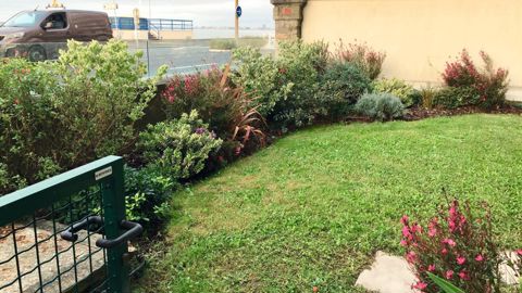 Ci-dessus : les massifs arbustifs du jardin de cette copropriété sur le littoral de La Baule (44), trop envahissants, entraînaient un coût d'entretien élevé. Ci-dessous : le même site après la requalification. . PHOTOS : TECHNATURA