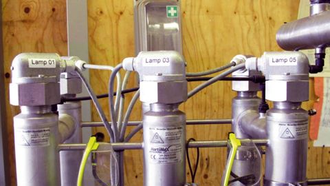L'eau coule en quantité à Boskoop, comme l'attestent les nombreux canaux maillant la région, mais l'eau souterraine, salée, remonte en surface, en particulier en période de sécheresse. Or, les cultures de la pépinière ne tolèrent pas l'eau saumâtre. Les pépinières Bos en Hoogenboom sont donc à la pointe en matière de récupération et recyclage de l'eau. La totalité des eaux de drainage est récupérée par des conduits positionnés sous la pouzzolane. Quatre grands réservoirs en tôle ondulée permettent le stockage de cette eau. Un système de désinfection UV traite l'eau de drainage pour diminuer les risques de maladie. L'eau désinfectée est réutilisée pour l'irrigation. L'entreprise réduit ainsi sa consommation d'eau, mais également de fertilisants puisque les éléments nutritifs lessivés sont réutilisés. Par ailleurs, des bassins stockent l'eau de pluie (8 000 m3) récupérée des toitures de serres. Une partie de l'eau, désinfectée par osmose inverse, est utilisée pour le fog system à haute pression (70-120 bars). « Cela permet à la fois d'humidifier et de rafraîchir l'air de la serre », souligne Aas Verduijn, ingénieur technico-commercial chez Stolze, qui a installé l'ensemble du réseau d'irrigation (fog system, sprinklers, goutteurs...) et du réseau électrique. « Il fait descendre la température de 4 à 7 °C (3). Mais il exige une eau de qualité. » Autre utilisation de l'eau sur la pépinière : le refroidissement de la serre par aspersion sur toiture (roof cooling).