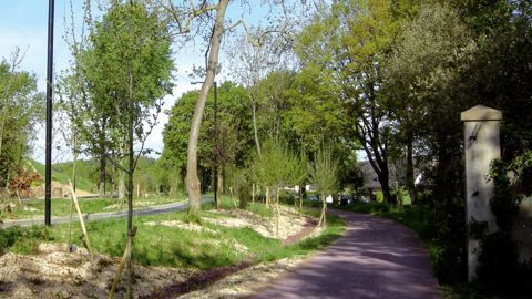 Abandonné depuis plusieurs décennies, le site de La Courrouze présente de multiples paysages. S'il n'était pas envisageable de les conserver à l'identique, le souhait de garder la trace de ce passé avait été exprimé par la maîtrise d'ouvrage. Comme pour les sols, l'inventaire approfondi des milieux a permis de concevoir le projet de paysage en y faisant référence. Ainsi, dans un secteur, une plantation de bouleaux vient compléter une boulaie existante conservée à proximité du tracé d'une nouvelle avenue. Ailleurs, un bouquet de deux chênes ayant échappé à l'abattage lors de la mise en place du plateau industriel du GIAT après guerre a été conservé dans le patio d'un immeuble du nouveau quartier « Bois habités ». Dans la zone de l'ancienne usine de munitions, des essences de première grandeur (chênes, tilleuls, érables) ont réussi à se développer au-dessus des murs de schiste qui séparaient les magasins de poudre les uns des autres. Pour conserver les sujets les plus intéressants, Charles Dard souligne les efforts constants des terrassiers et la vigilance scrupuleuse du maître d'oeuvre. Sur la base d'un inventaire réalisé par le bureau d'études Aubépine, les arbres à conserver ont été numérotés et nettoyés, premier pas vers la reconnaissance de leur existence et de leur valeur. Puis une protection à l'aide de barrières ou de ganivelles a été installée afin de protéger le sol dans le périmètre situé à proximité des arbres.